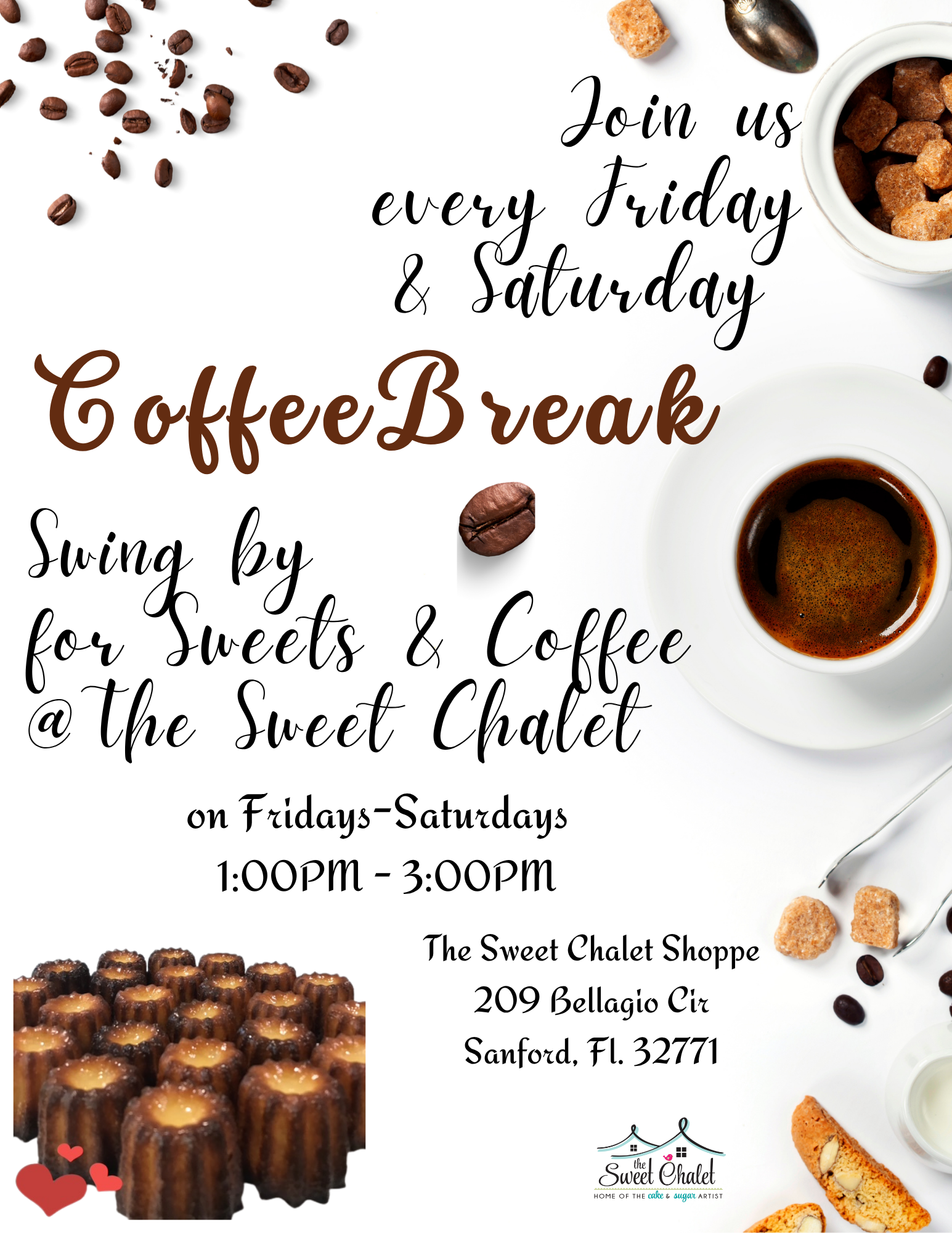 Inspired by the new trends in this industry, the need to share my latin flavors and my passion to teach people on how to do their own masterpieces, The Sweet Chalet was established and opened it's doors in the spring of 2016.